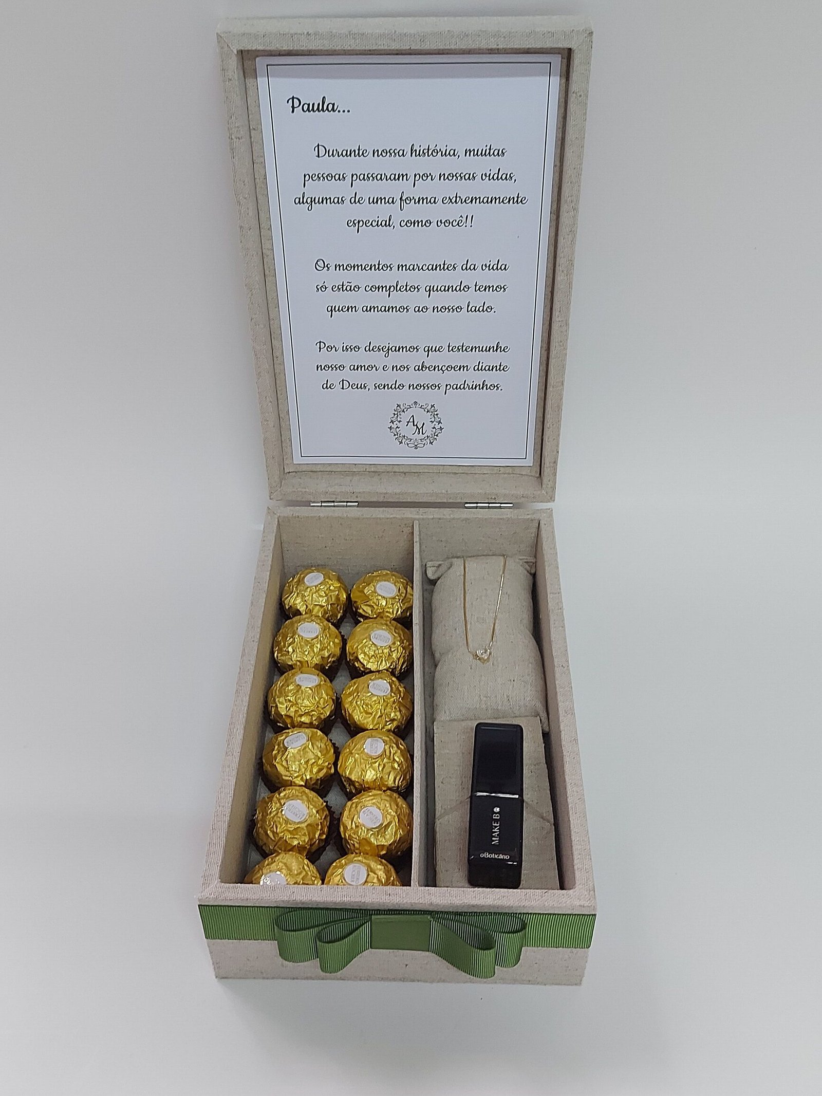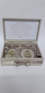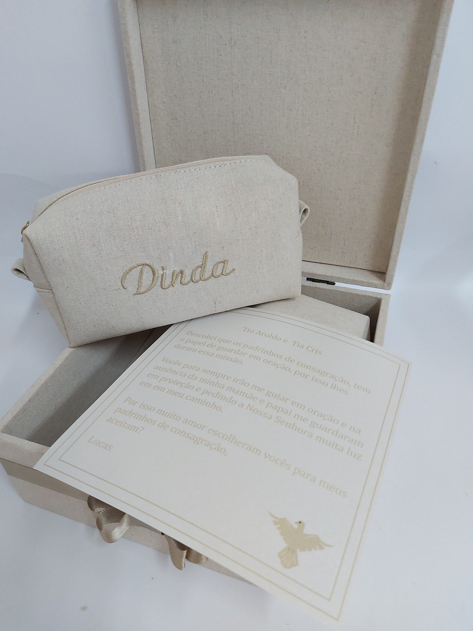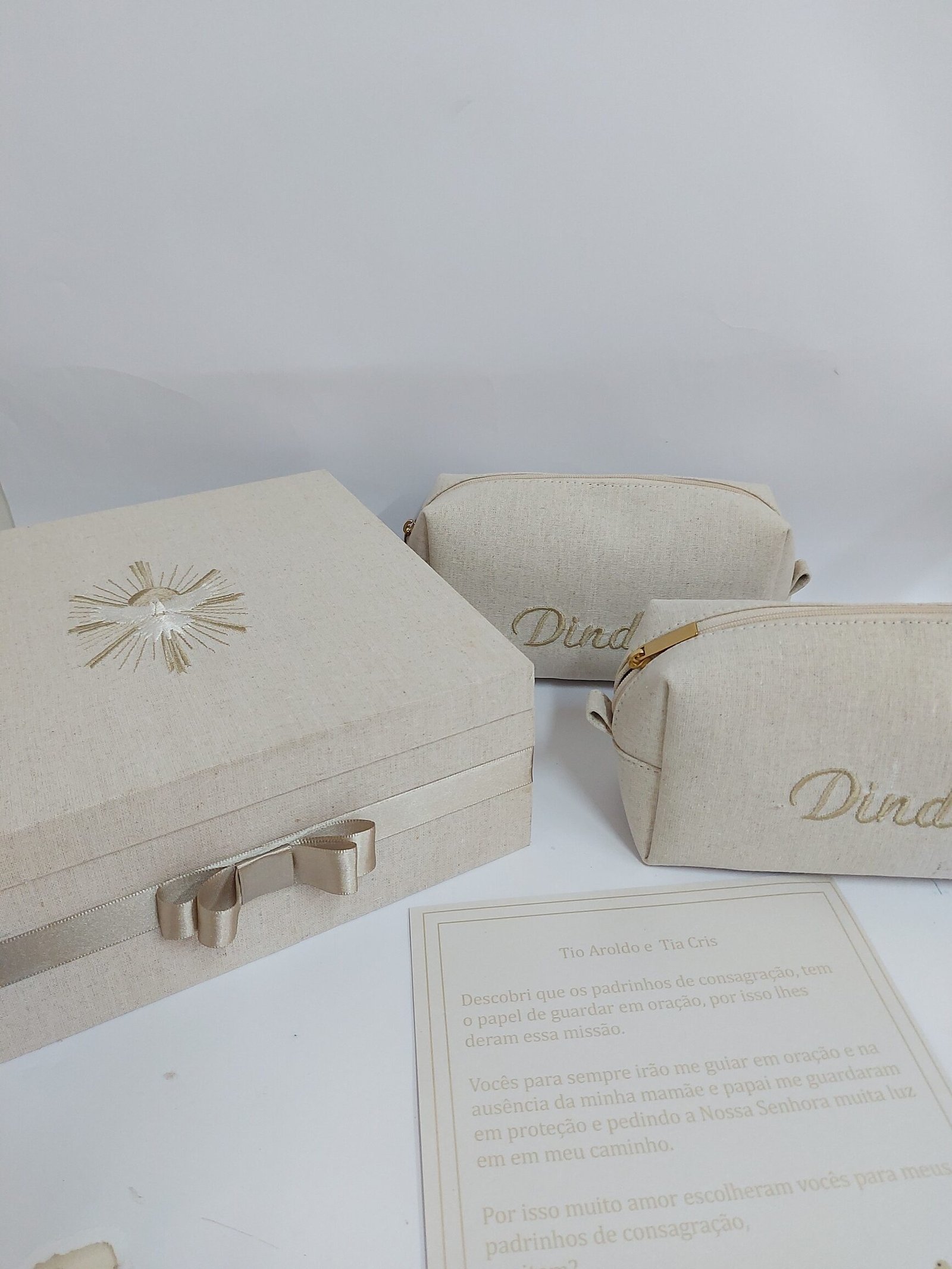 Presentes personalizados, evidenciando a importância desse compromisso espiritual, com acabamentos sofisticados e toque afetivo.