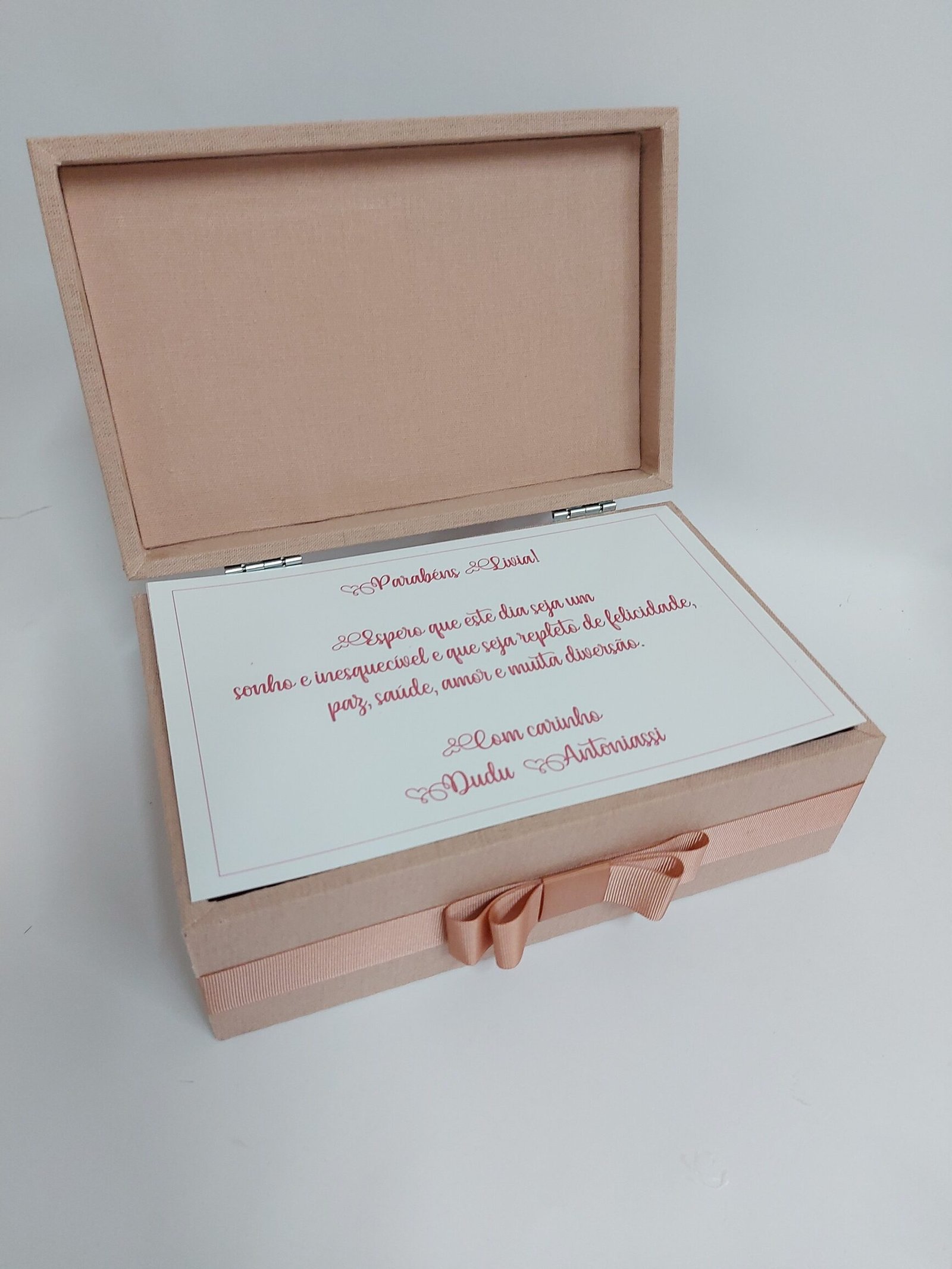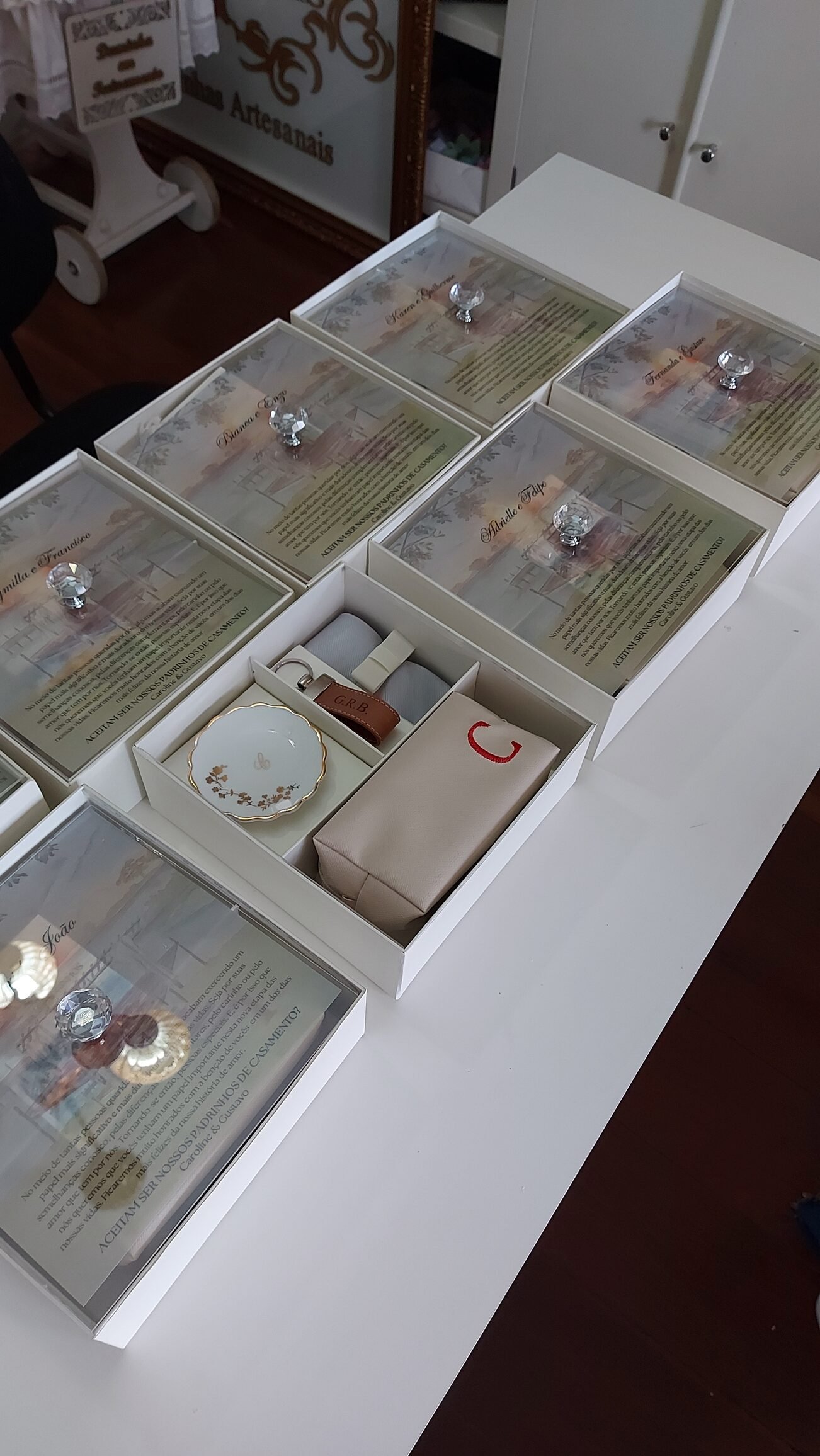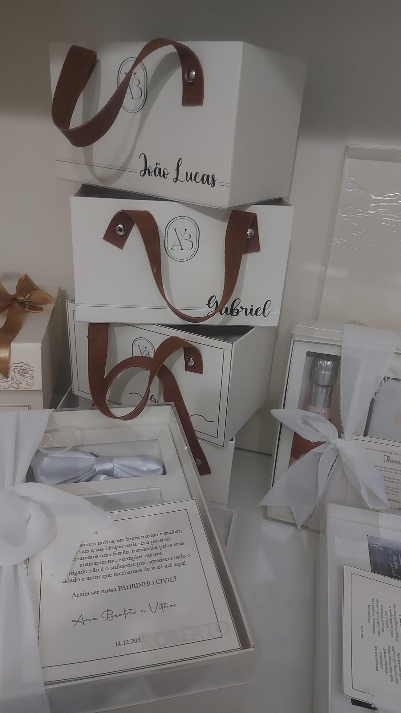 Criadas com sofisticação e cuidado, nossas caixas de batizado valorizam ainda mais o presente ou lembrança, traduzindo afeto e fé em cada detalhe.